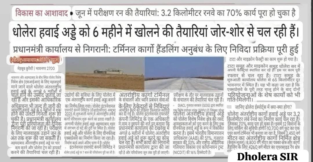 Dholera Smart City (920 sq km (one of the largest smart city projects in India) officially the Dholera Special Investment Region (SIR) — is India’s first planned greenfield smart city and industrial megaproject in Gujrat India, being developed as part of the Delhi-Mumbai Industrial Corridor (DMIC) to create a world-class economic, industrial, and urban hub in western India. It is 100 km on southwest of Ahmedabad