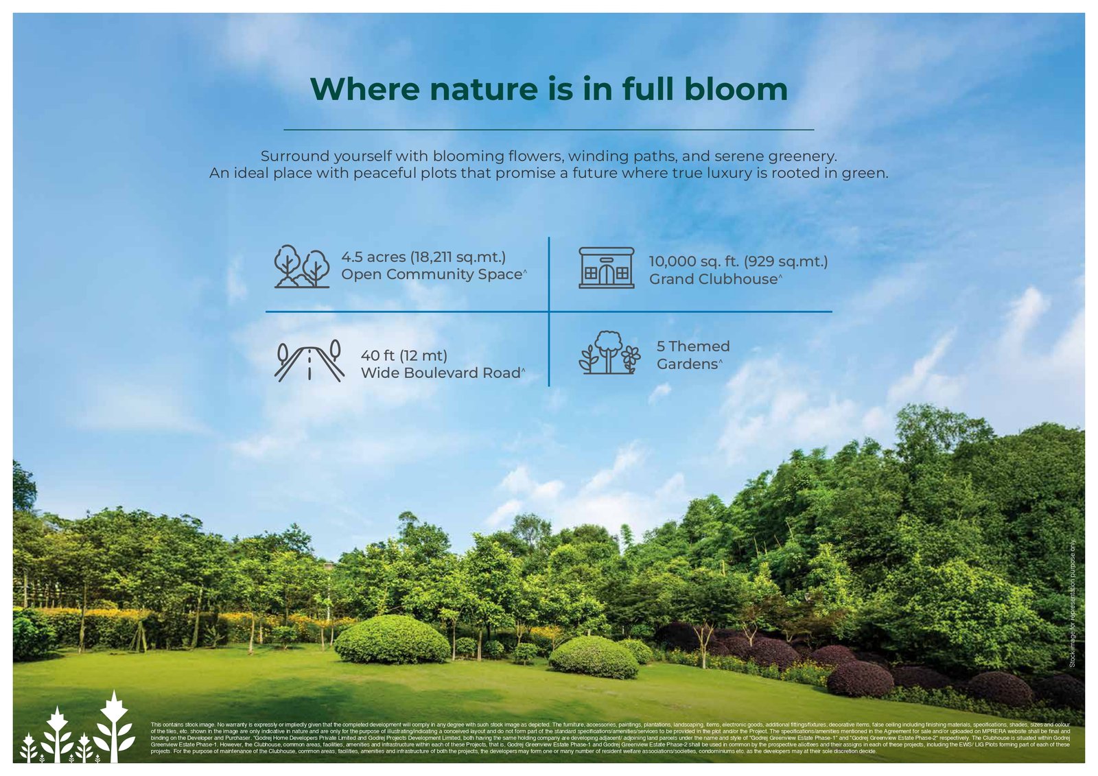 Godrej Greenview Estate in Indore is a ~46-acre premium plotted development located on the Indore-Ujjain Highway. The project offers plots ranging from 1,000 to 2,500 square feet, featuring amenities such as lush landscaping, a clubhouse, and jogging tracks.